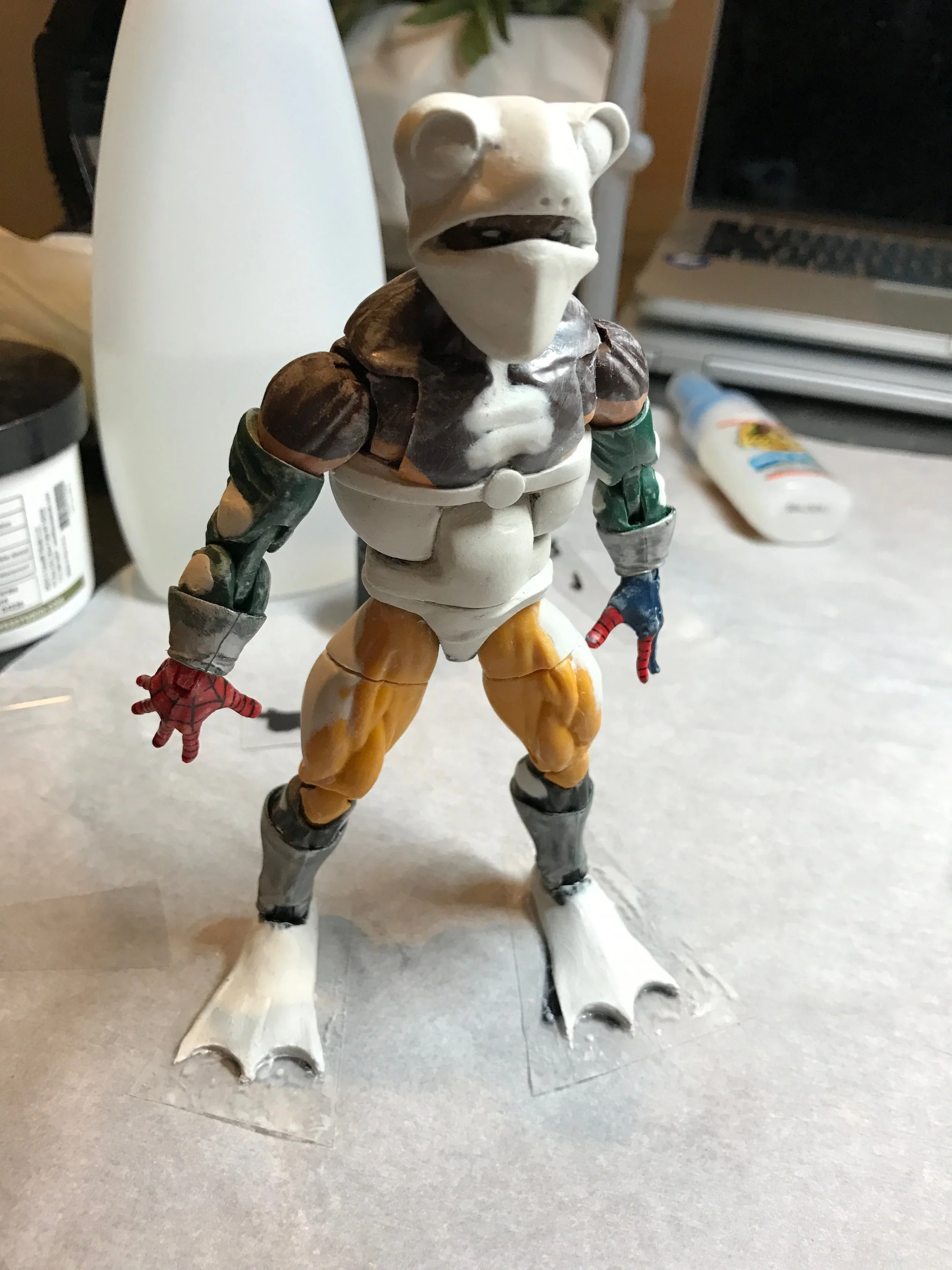 Leapfrog was made using Wolverine body and upper legs, Havok lower legs and feet, Toybiz Dr Octopus arms, gloves and boots, Spider Man hands and alt hands and a Cottonmouth Head. This Wolverine buck is really awesome. It gave me the smaller stature I was looking and it was relatively easy to work with in regards to eliminating paint rub.