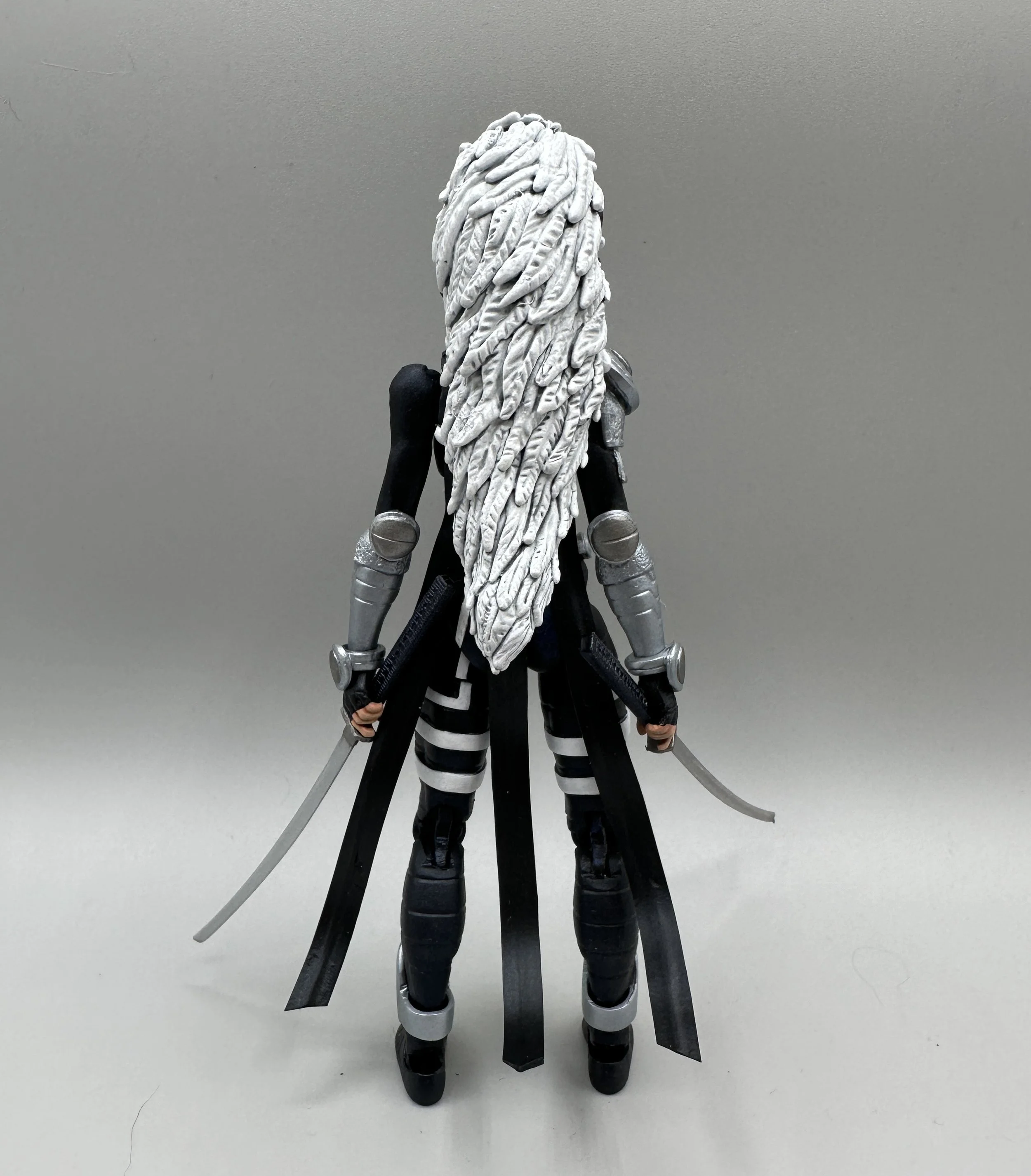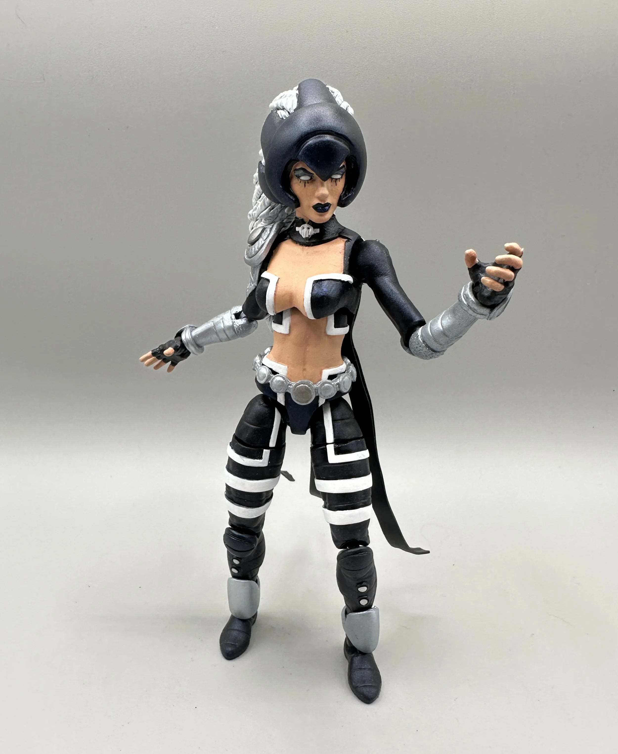 Warbird was made using Age of Apocalypse Kitty Pryde legs, lower arms and hands, Marvel Now Emma Frost torso and upper arms, Songbird head and belt from Retro Black Widow. Enjoy!